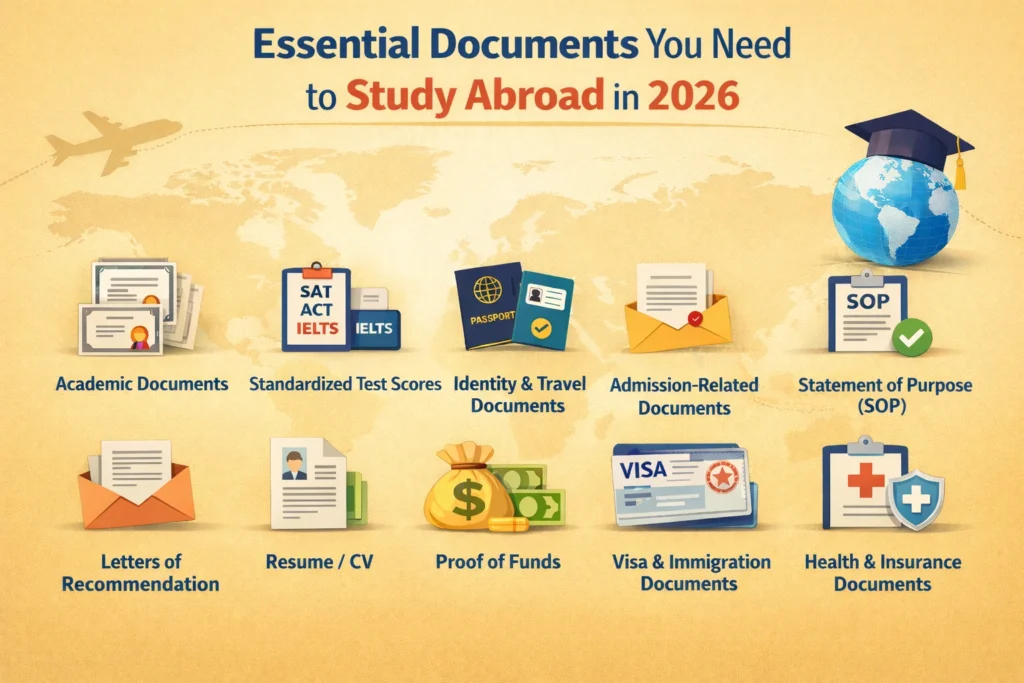 If you are a student who is looking forward to pursuing higher studies abroad, the road ahead can be both exciting and challenging. With proper planning, you can navigate the entire process confidently. However, one of the most crucial steps in this journey is compiling all the required documents, as they form the backbone of your application.